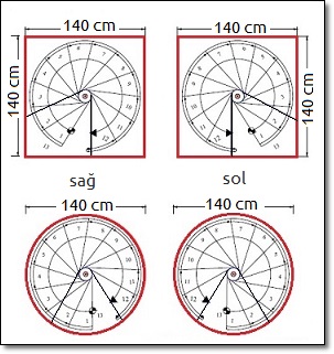For a staircase with a diameter of 140 cm; the opening in the ceiling should be at least 150 cm x 150 cm square or fully open.