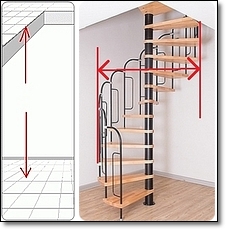 This staircase, with a diameter of 120 cm, is suitable for room heights between 262 and 299 cm.